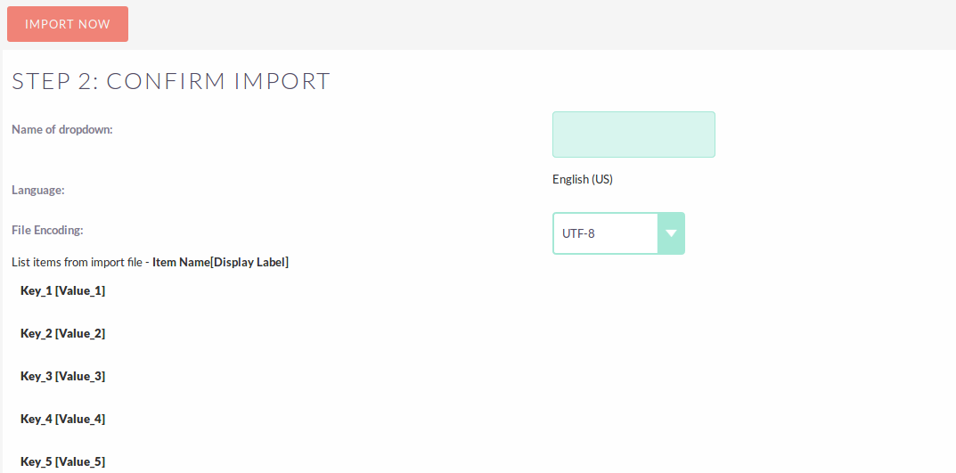 Navigate to Admin > Import Dropdown under the “Dropdown Importer” section. From here, you can upload your .CSV file to either import into an existing dropdown or create a new one.