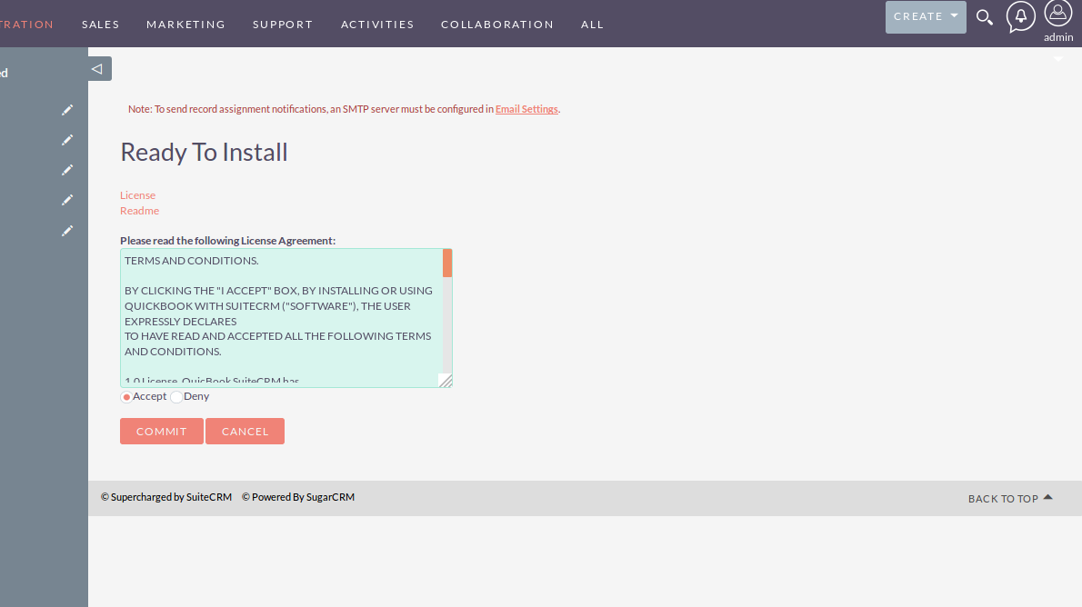 - Enter your QuickBooks credentials in the SuiteCRM Admin Panel, including access token, refresh token, company ID, OAuth consumer key, and OAuth consumer secret.